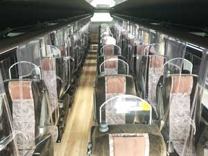 各座席に視界を妨げない「飛沫感染防止カーテン・パーテーション」を設置し、安全で快適なバスの旅をお手伝いいたします。